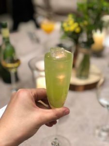 柑橘系、季節の色合いを添えた白ワインのスプリッツァ